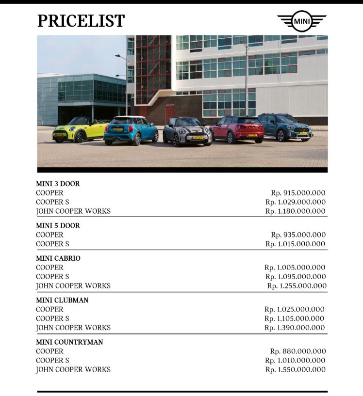 Harga terbaru Mini Cooper di Tahun 2024, menawarkan beberapa serangkaian model yang memikat dengan harga yang kompetitif. Dari Mini Cooper Hatchback yang ikonik hingga SUV…